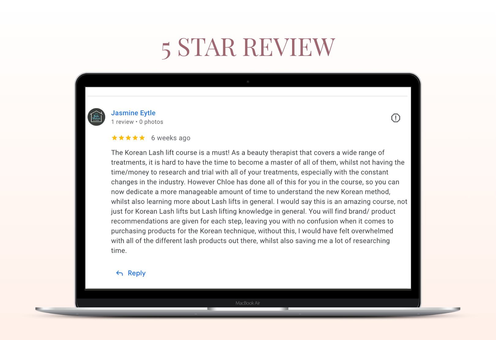 I would say this is an amazing course, not just for Korean Lash lifts but Lash lifting knowledge in general. You will find brand/ product recommendations are given for each step, leaving you with no confusion when it comes to purchasing products for the Korean technique, without this, I would have felt overwhelmed with all of the different lash products out there, whilst also saving me a lot of researching time.